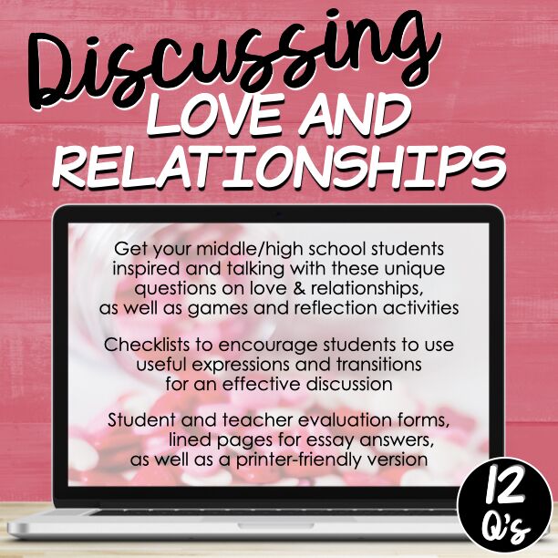 - A list of 12 thought-provoking questions for middle/high school students on the subject of love and relationships