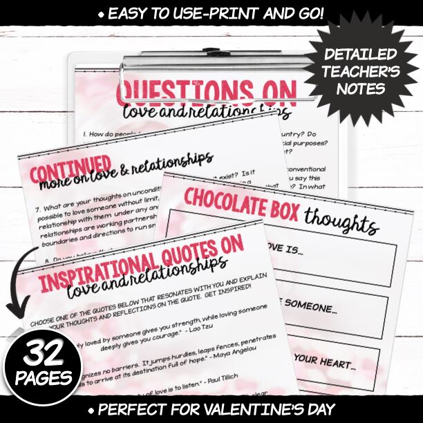 - Chocolate Box Thoughts Game (a game with statements on love and relationships whereby students need to complete statements with their own answers)