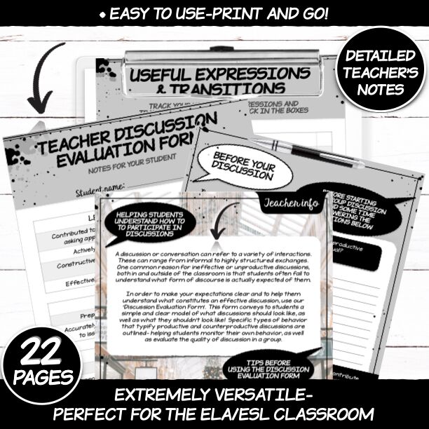 - Notes pages (Encouraging students to write notes throughout discussion)