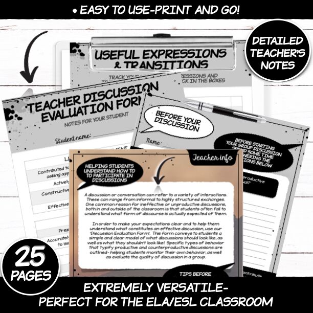 - Notes pages (Encouraging students to write notes throughout discussion)