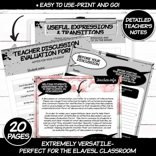 • Notes pages (Encouraging students to write notes throughout discussion)