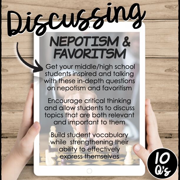 - A list of 10 thought-provoking questions for middle/high school students on the subject of nepotism and favoritism