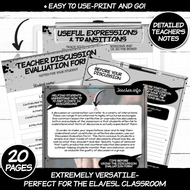 - Notes pages (Encouraging students to write notes throughout discussion)
