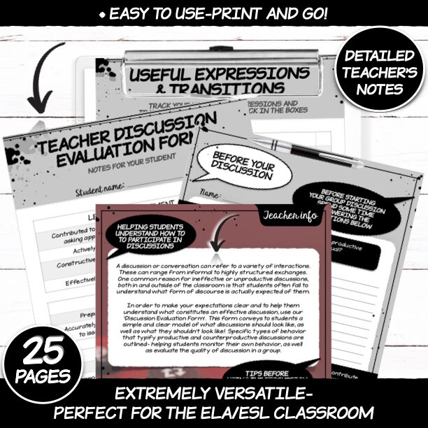 • Teacher evaluation form to assess student engagement and discussion effectiveness
