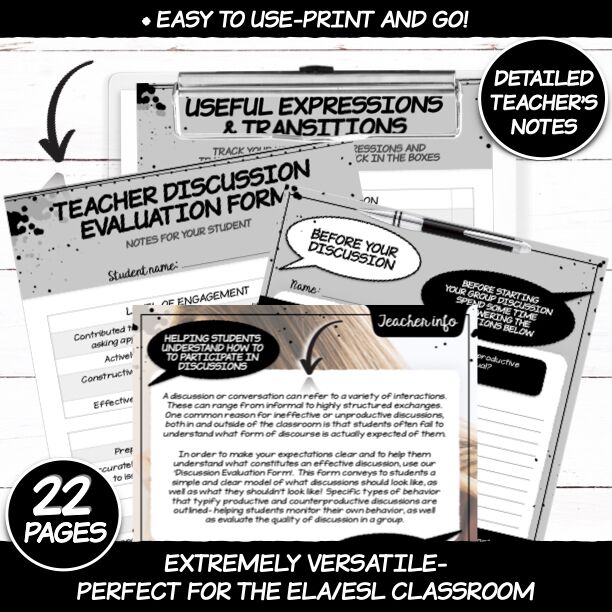 - Notes pages (Encouraging students to write notes throughout discussion)