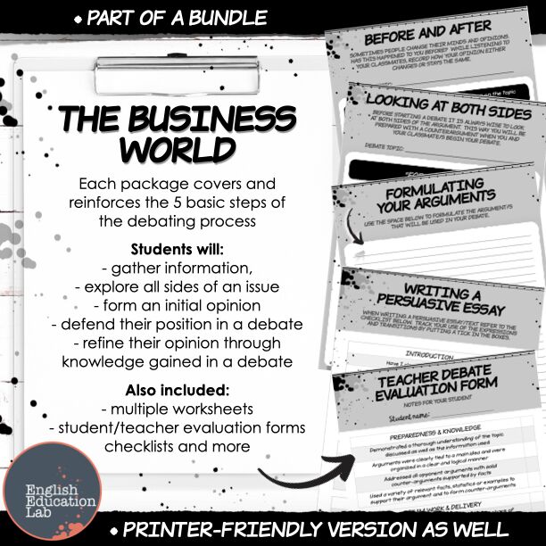 Each debate package covers and reinforces the five basic steps of the debating process: gathering information, exploring all sides of an issue, forming an initial opinion, defending the position in a debate and finally, refining your opinion through knowledge gained in the debate.